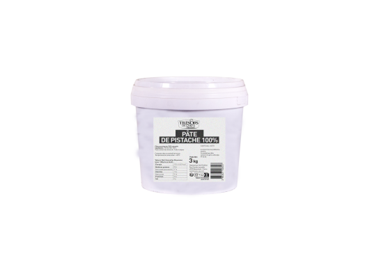 Pâte lisse et fluide obtenue par broyage de pistache, c'est une pâte pure faite avec un % plus élevé de pistache épluchée, puis caractérisée par une couleur verdâtre, un niveau de torréfaction plus élevé