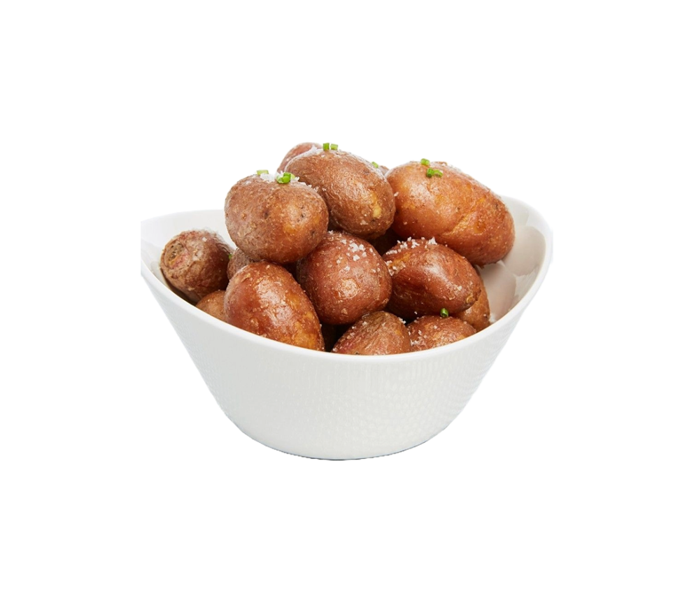 Pommes de terre grenaille origine France au sel de Guérande, enrobées de beurre, cuites, surgelées IQF.